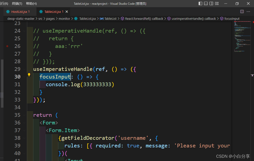 当子组件被高级组件(子组件表单被Form.create())包裹的时候,用wrappedComponentRef才可以调用子组件的方法,访问到的都是子组件暴露出来的方法,