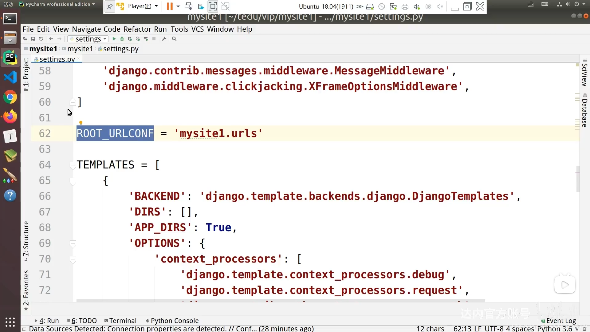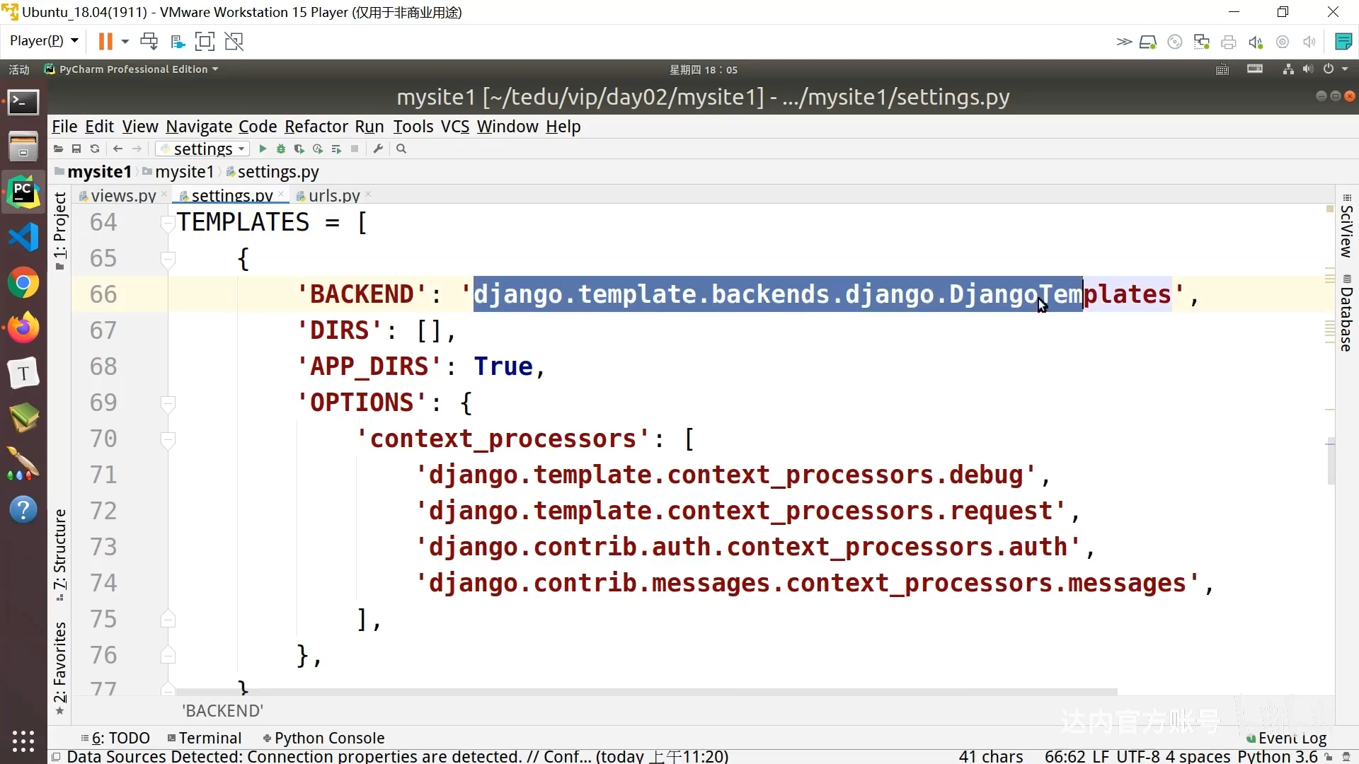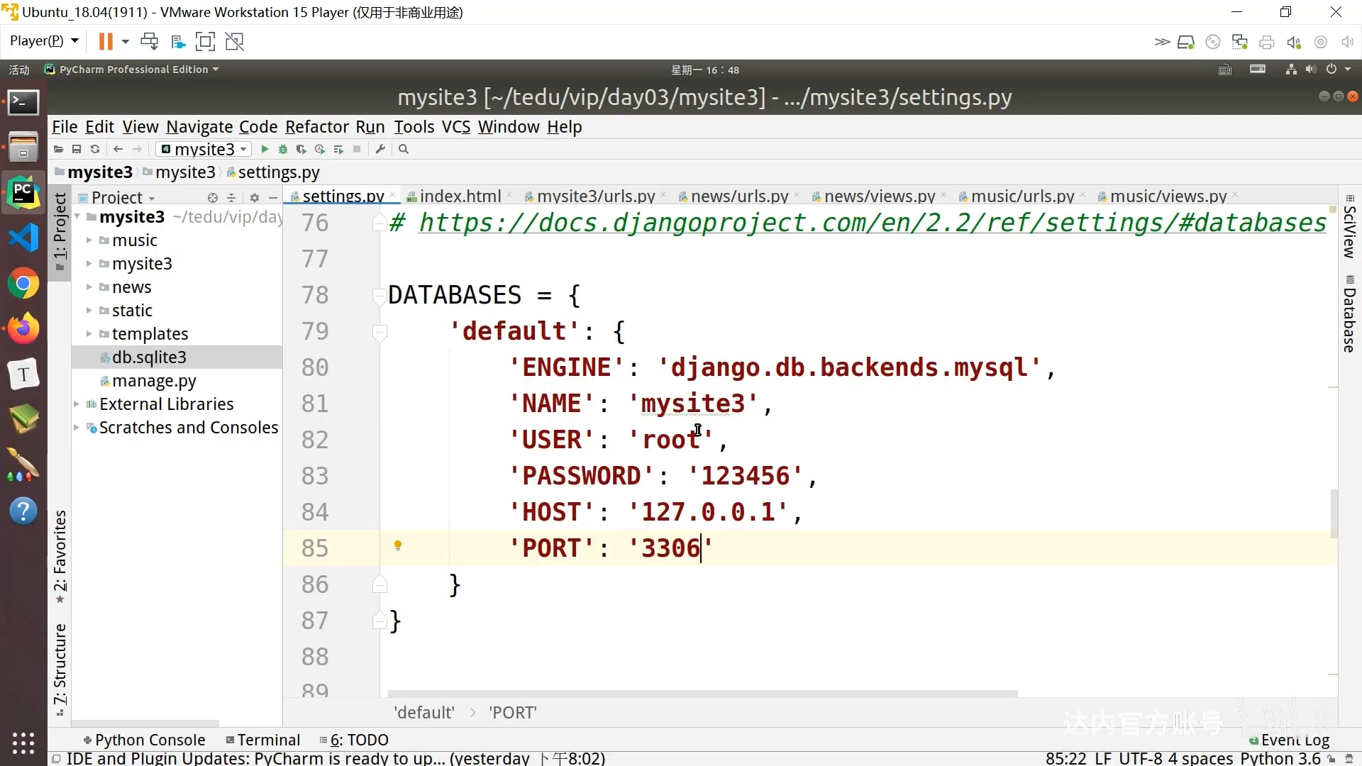 - 修改django项目中的setting.py,