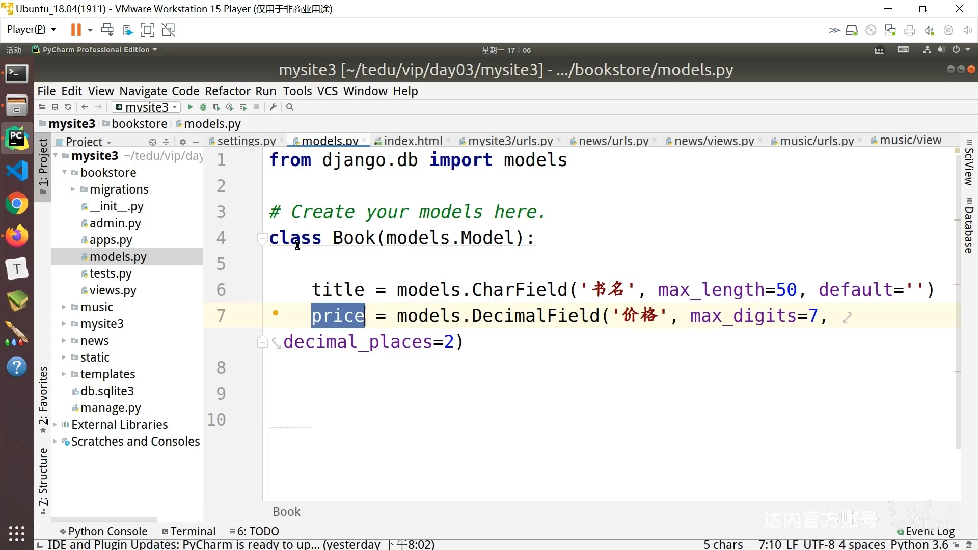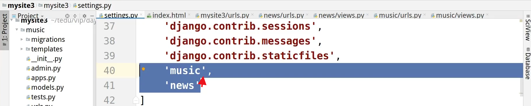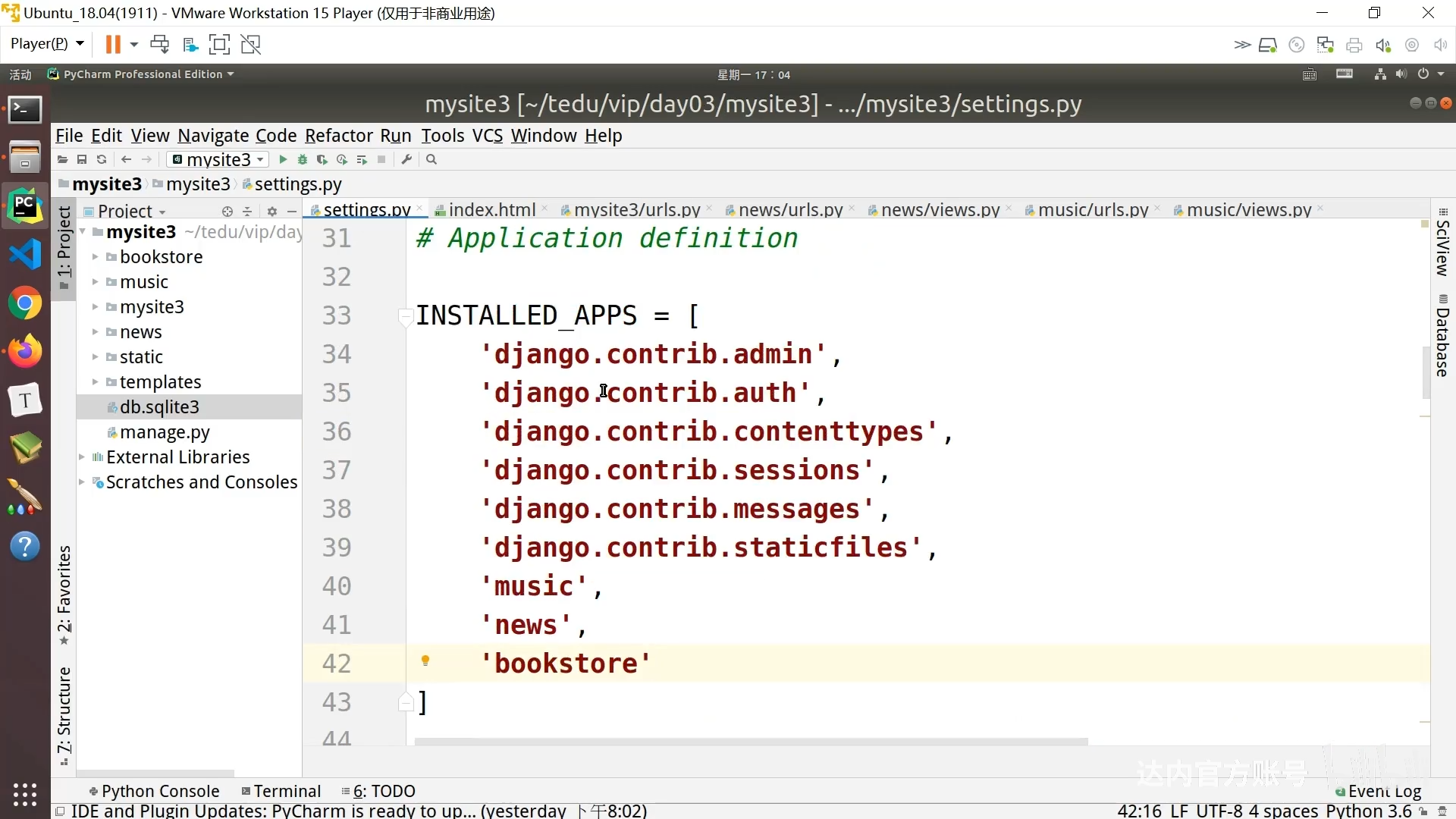 - 修改django项目中的setting.py,