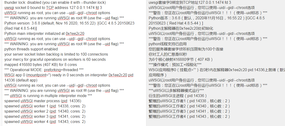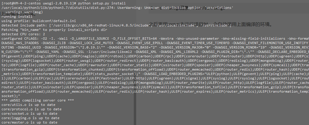 之后再用uwsgi去运行项目时、会自动调用上面编译的环境。