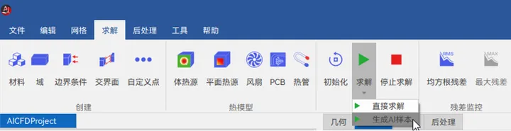 选择菜单栏求解>求解>生成AI样本,开始设置样本空间;