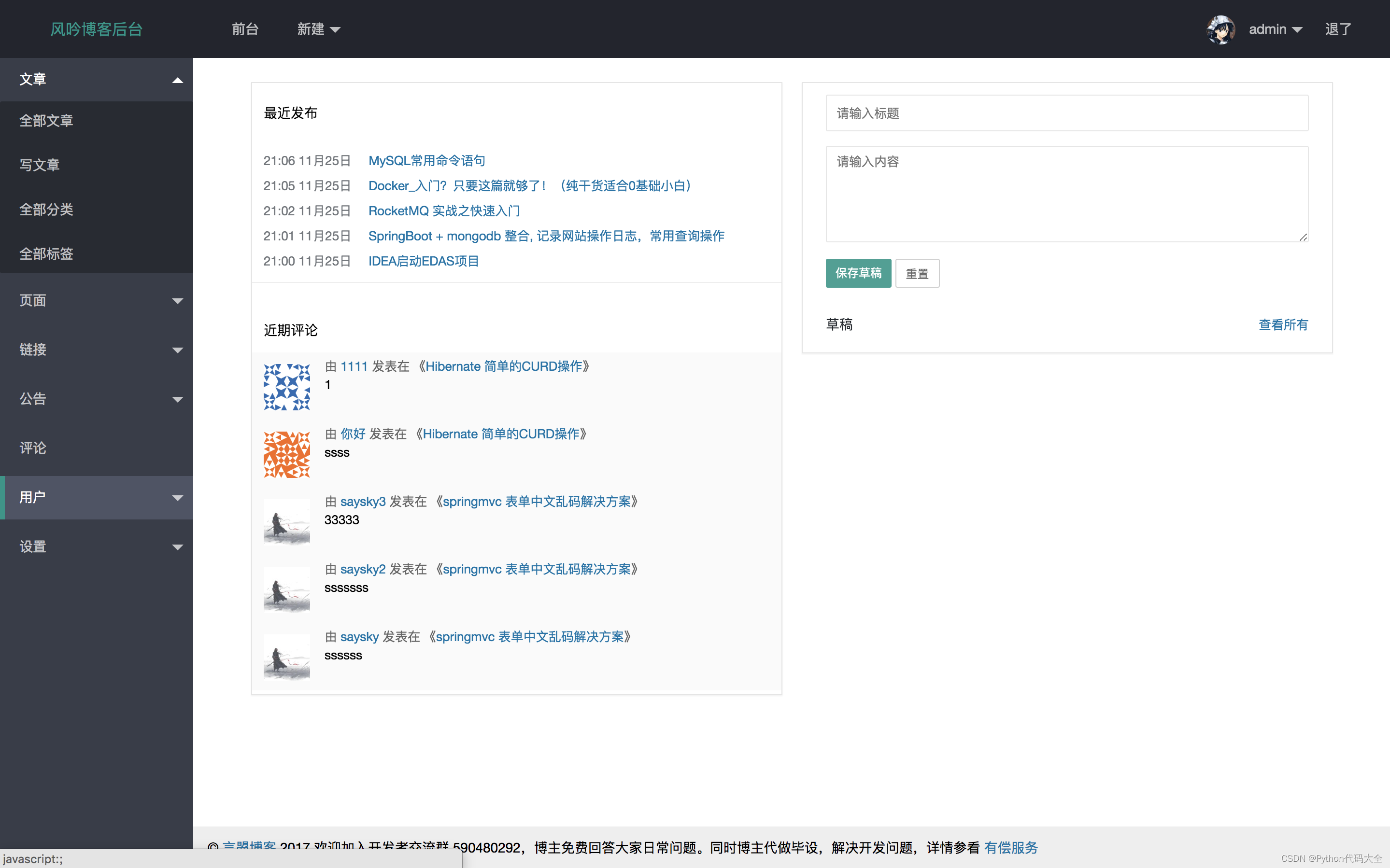 该博客是基于SSM实现的个人博客系统,适合初学SSM和个人博客制作的同学学习。
