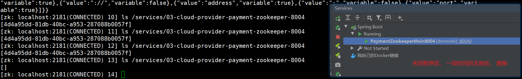 [zk: localhost:2181(CONNECTED) 7] ls /services/03-cloud-provider-payment-zookeeper-8004