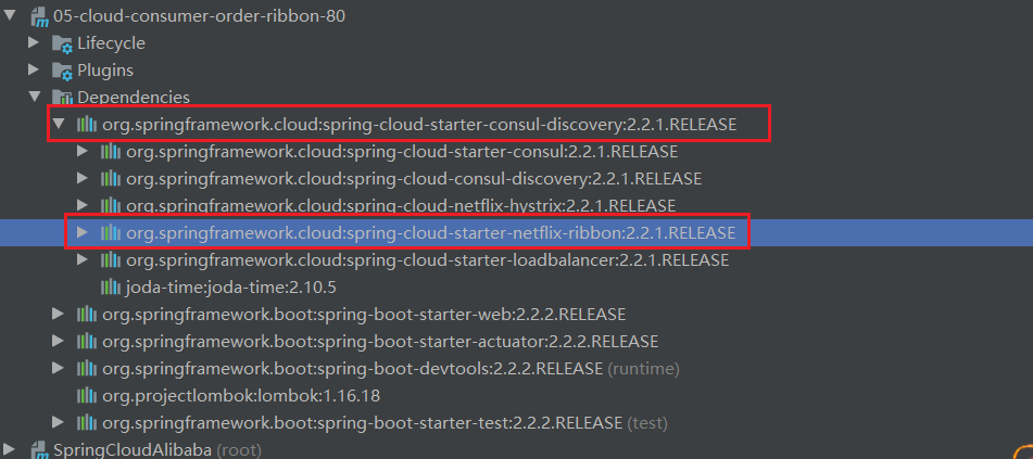 猜测spring-cloud-starter-netflix-eureka-client自带了spring-cloud-starter-ribbon引用