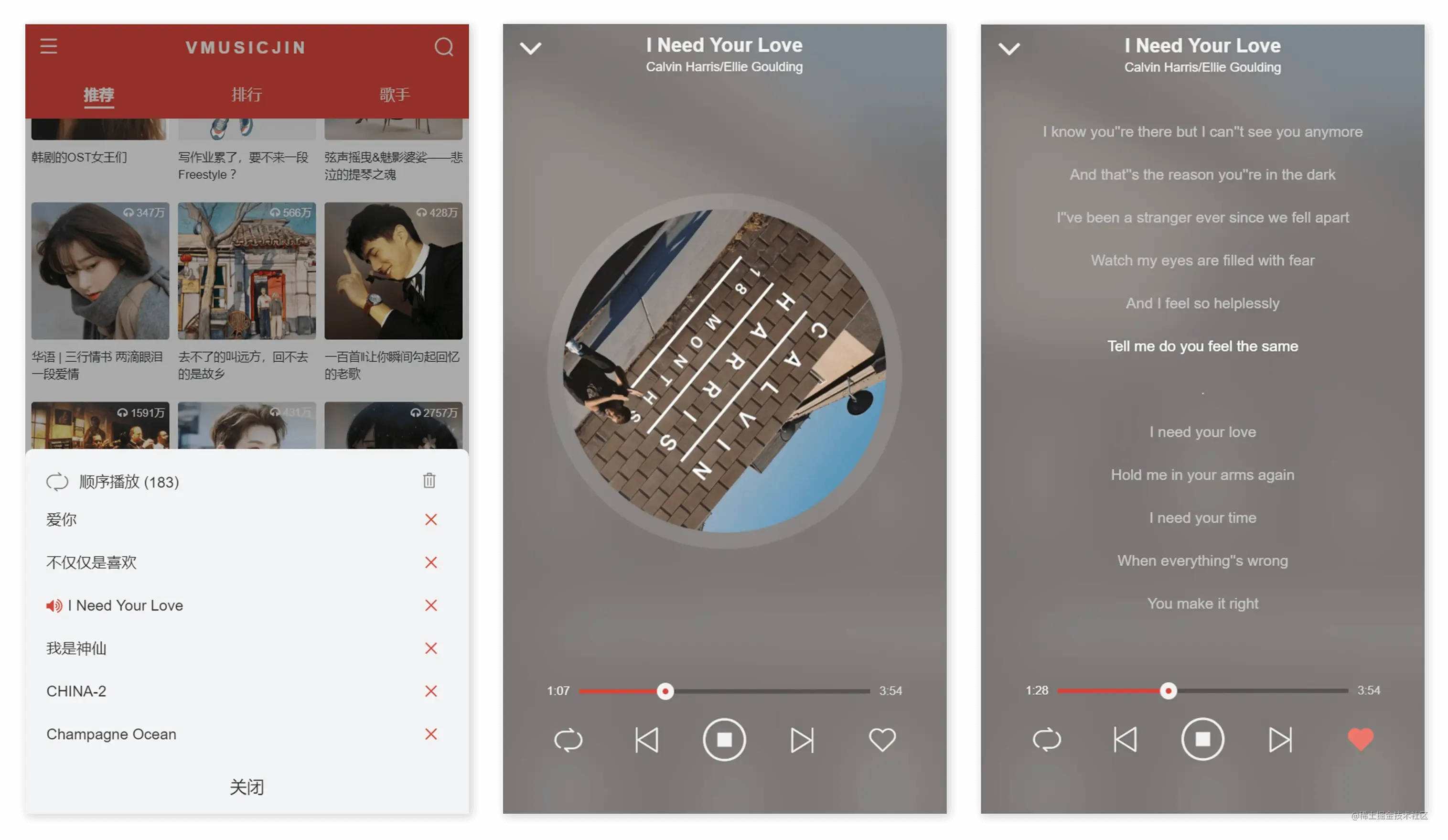 数据、播放状态、播放历史、习惯歌曲等方面使用了 vuex 来进行管理,因为数据太多,组件直接传递的话是会死人的,所以还是老老实实的用 vuex 吧,数据之前的传递真的很方便。