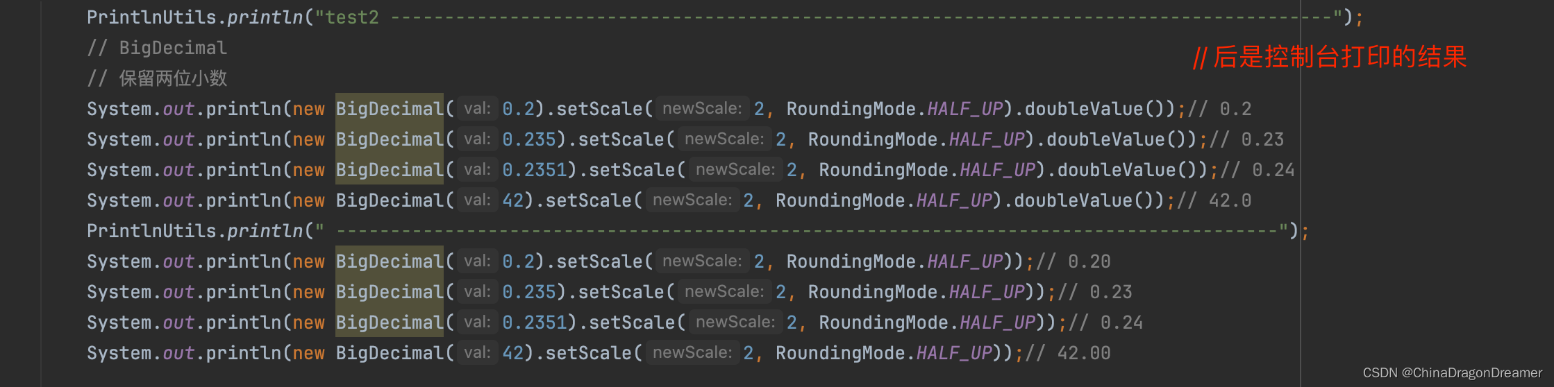 // 保留位数是偶数,使用ROUND_HALF_UP