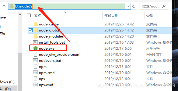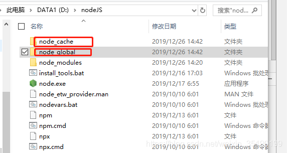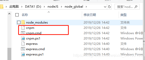 3、检测安装cnpm是否安装成功,找到下图的路径:我的是D:\nodeJS\node_global