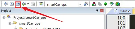 15. 双击打开工程源码文件夹的MDK-ARM文件夹下“smartCar_ups.uvprojx”keil5工程文件。
