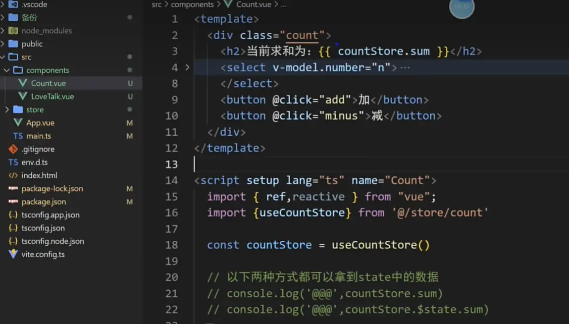pinia的storeToRefs响应式数据使用。storeToRefs只会关注sotre中数据,不会对方法进行ref包裹。
