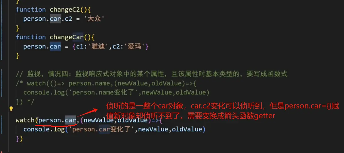 分配不同对象时,对于ref只需要car.value=新对象,而对于reactive需要借助Object.assign(被替换对象,新对象1,新对象2...)