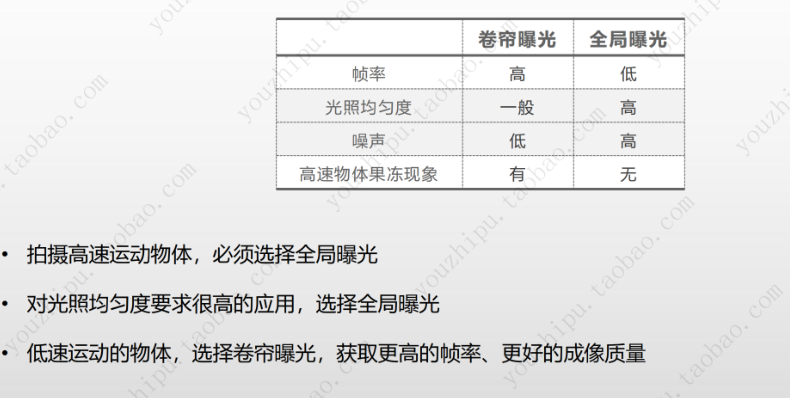 卷帘曝光和全局曝光是CMOS传感器两种常见的曝光模式,以下是二者的对比:
