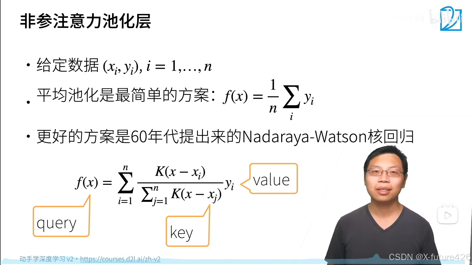 这一部分也就是讲第一大点中“注意力汇聚”那个池化层如何实现池化操作。