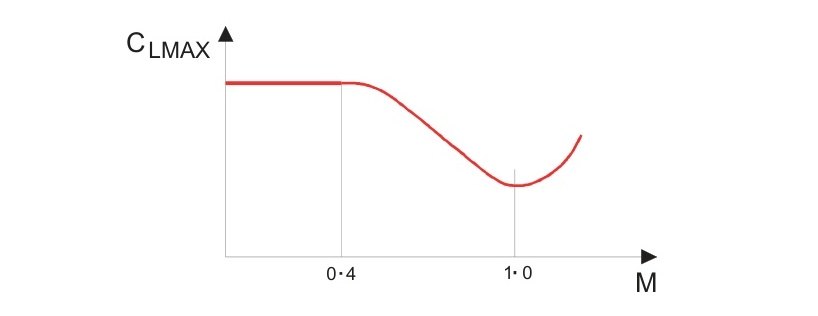 压缩性的影响通过降低** C LMAX \mathrm{C}_{\text{LMAX}} CLMAX**来增加失速速度。