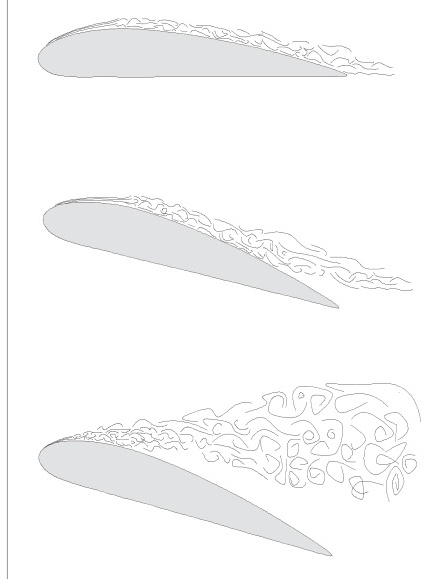 随着攻角增加,逆压梯度增加,减少了动能,边界层将开始从后缘处的表面分离。