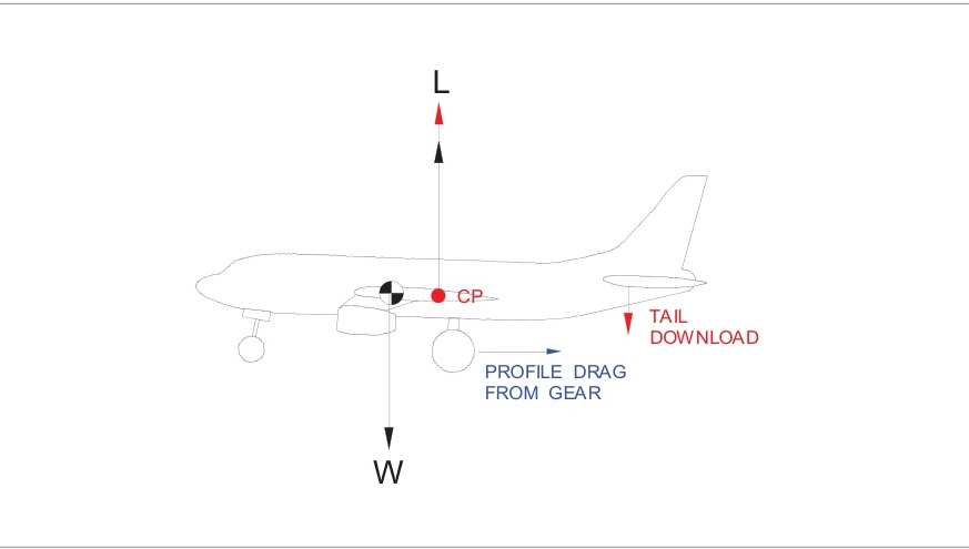 放下起落架将增加失速速度,这是由于尾部下压载荷增加。