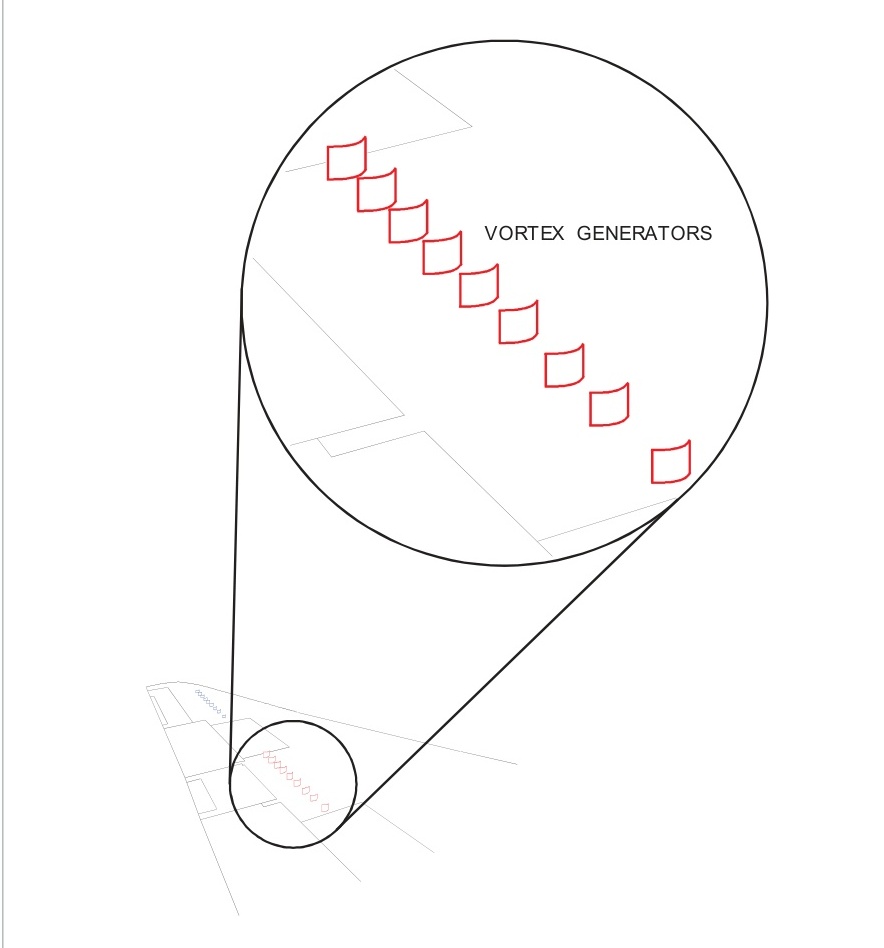 e. 涡流发生器也用于延迟后掠翼的翼尖失速。