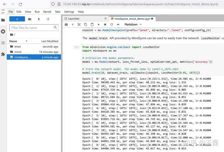 点击执行,就可以看到这个notebook直接运行起来了,不用额外的去安装MindSpore以及Vision套件。