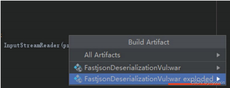 接着,我们可以在 IDEA 工程的 target 目录下发现新生成的“FastjsonDeserializationVul ”,进入该目录,全选该 Web 工程的所有文件并打包成 WAR包,如图 5-6 所示