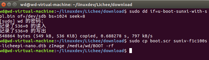sudo cp boot.scr suniv-f1c100s-licheepi-nano.dtb zImage /media/wd/BOOT -rf