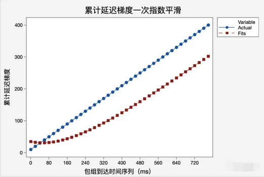 注意,计算一次指数平滑值的公式为 ,实际观测值前面的系数为 。而上述源码的计算公式的实际观测值 accumulated_delay_ 的平滑系数为