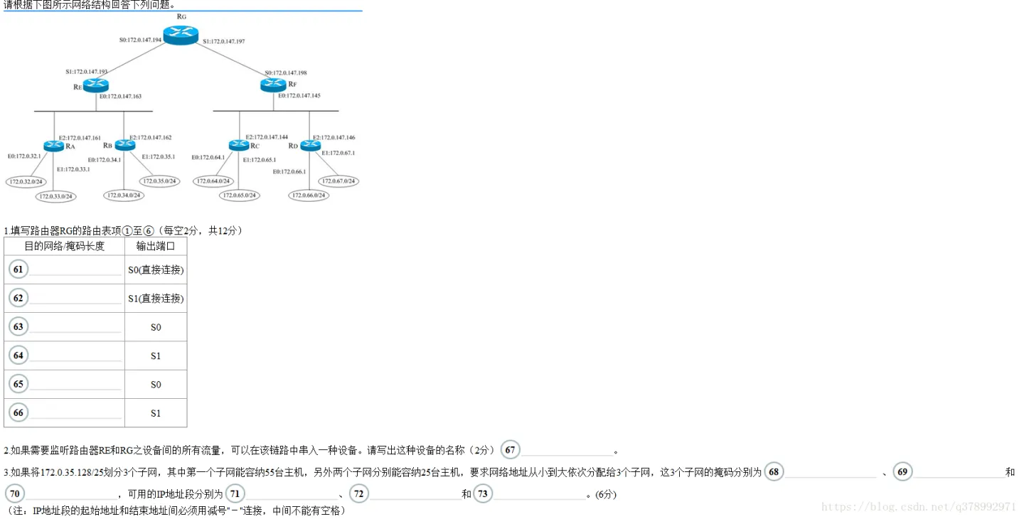 1、某公司分配给人事部的IP地址块为205.67.159.224/27,分配给培训部的IP地址块为205.67.159.208/28,分配给销售部的IP地址块为205.67.159.192/28,那么这三个地址块经过聚合后的地址为(C)