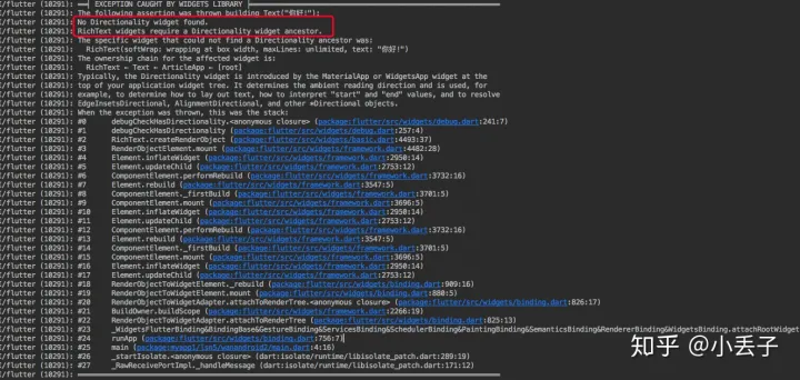 如果直接运行则会出现异常,因为Flutter不知道以什么顺序摆放文字(从左到右/从右到左)