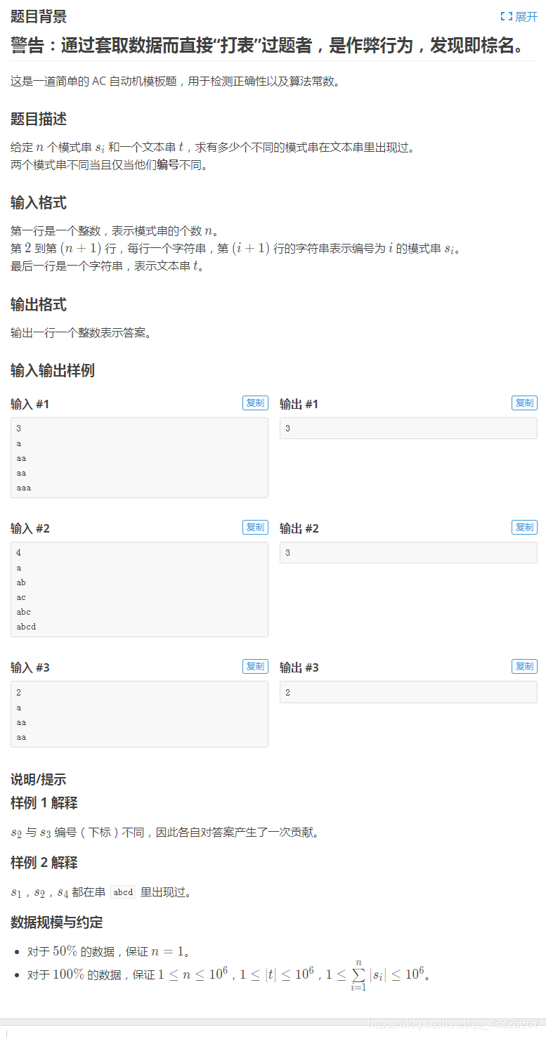 看一个例题吧:洛谷 【模板】AC自动机(简单版)