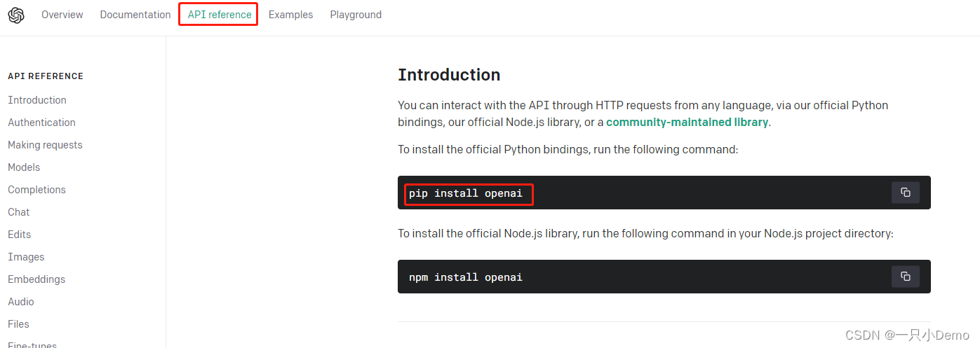 😽4. 如何调用OpenAI的API呢,OpenAI官网提供了一些案例,我们可以参考:
