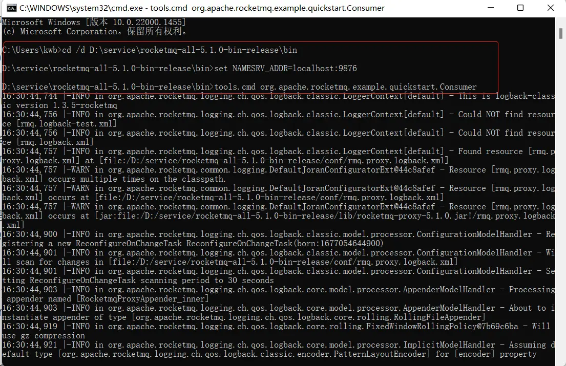 tools.cmd org.apache.rocketmq.example.quickstart.Consumer
