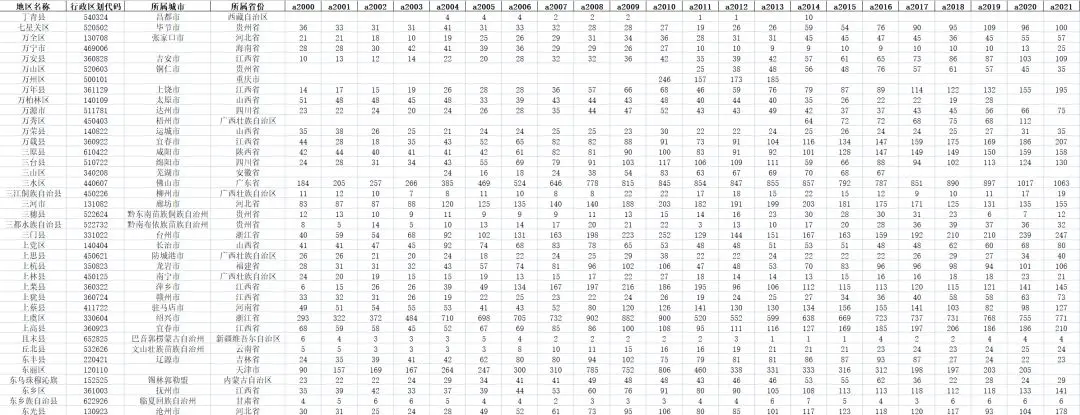 之前基于《中国县域统计年鉴》我们分享了2000至2021年的综合经济数据(可查看之前的文章获悉详情)!本篇文章我们继续给大家带来从2001年—2022年《中国县域统计年鉴》整理的数据——2000至2021年的农业、工业和通讯数据!