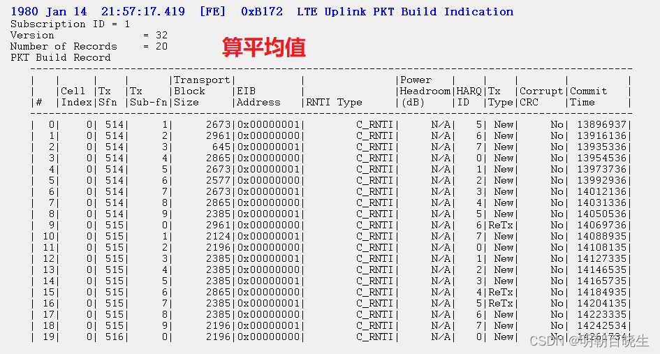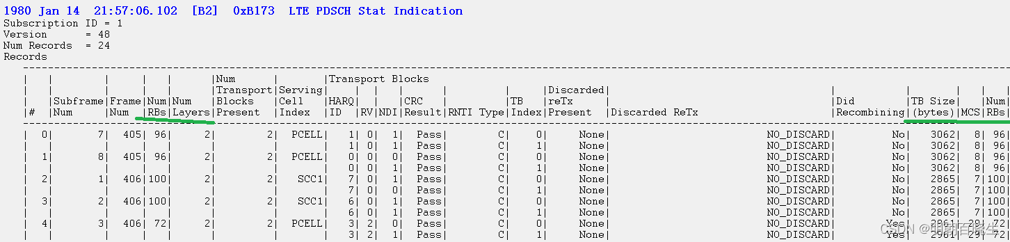其中BLER 只有在终端中可以看到。其它通过网络下发的DCI 消息