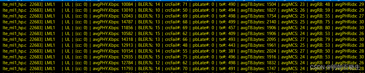 [nr5g_mac_metric_qsh.c 1573] NR5GMAC | DL | {cc: 0} | avgPHY.Kbps: 13632 | BLER.%: 7 avgTB.bytes: 14205 | avgMCS*10: 100 | avgRB: 129