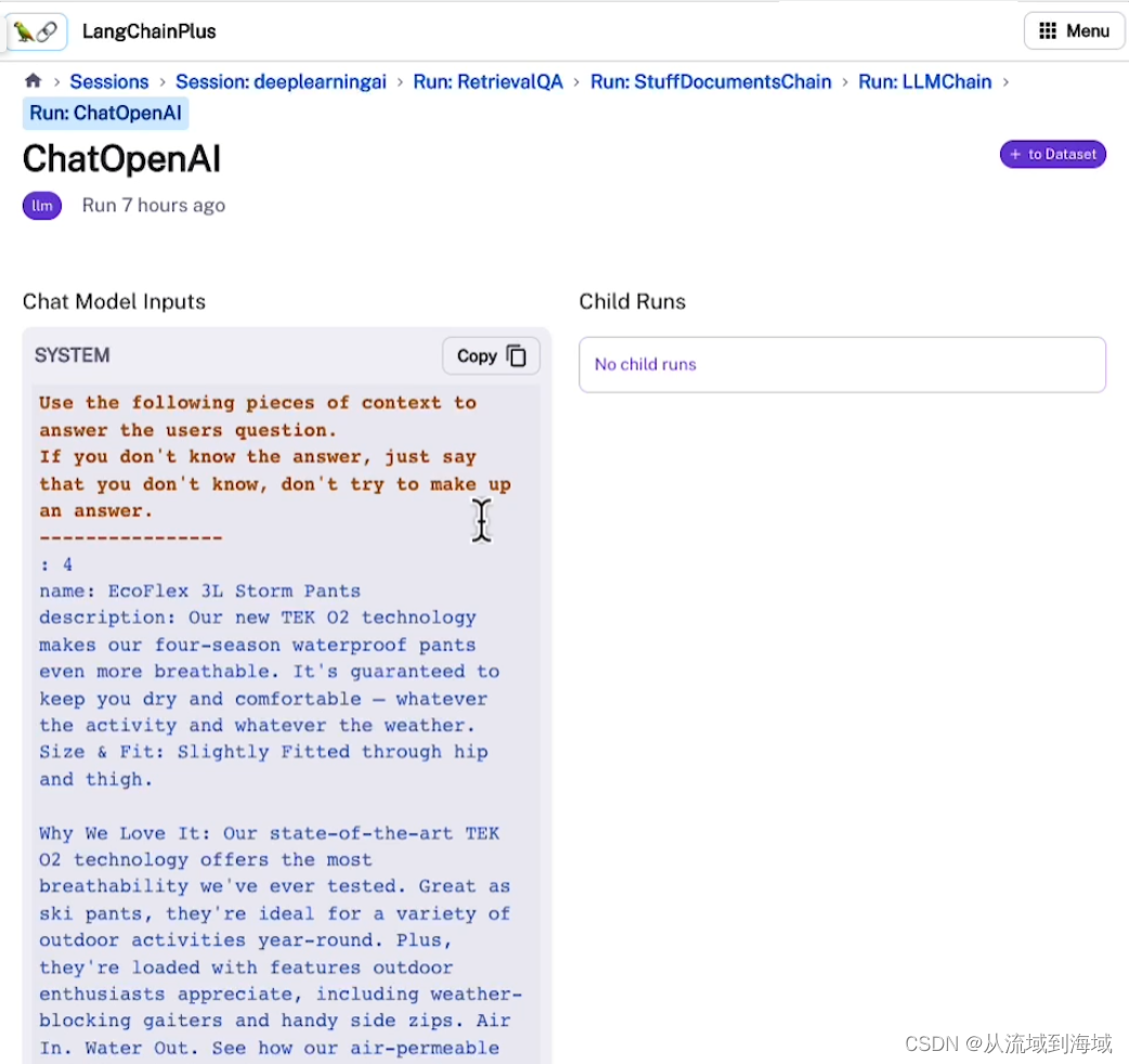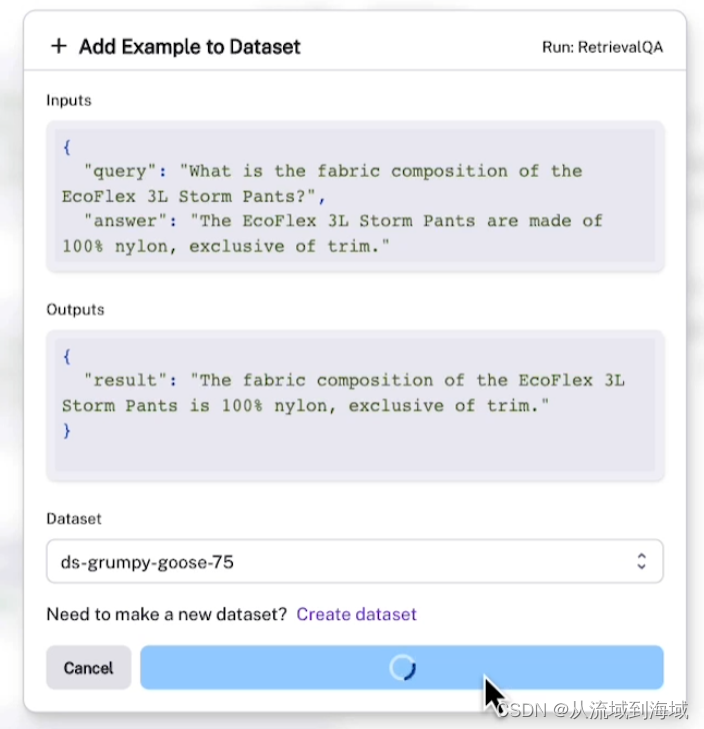 将当前QA Chain的输入输出加入到刚刚创建的数据集内: