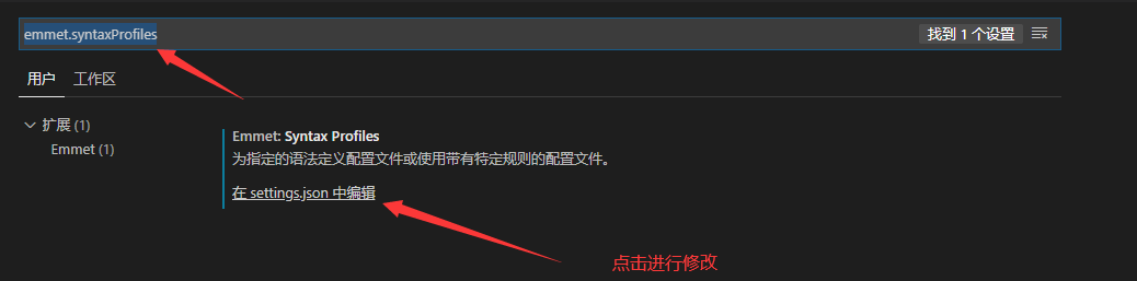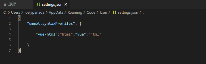 然后在文件->首选项->设置 找到用户设置,点开 userSettings 添加如下的设置