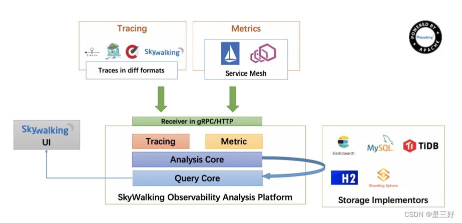 - 支持多种多样的图表和界面展示,比如Grafana等。