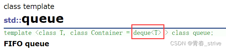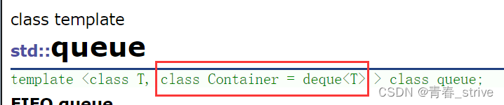 和stack一样,模板参数有两个,一个是数据类型T,一个是Container,即是一个容器,默认使用deque