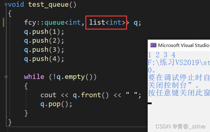 下面具体测试在fcy命名空间里模拟实现的queue的功能,默认可以不传容器: