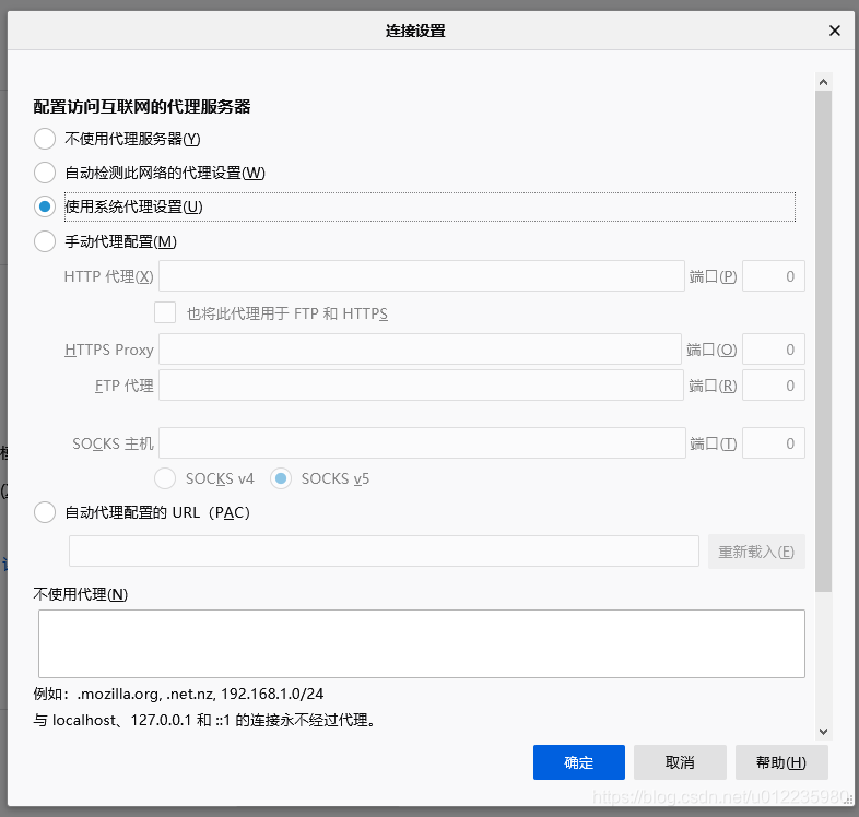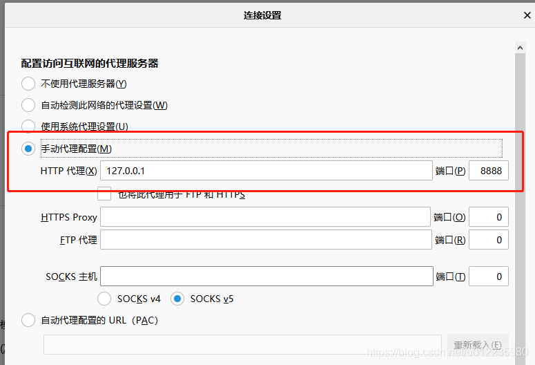 若使用 Firefox 浏览器进行测试时,启用 Fiddler 前,需要配置代理服务器。可选择使用系统代理设置,启用 Fiddler 后,系统代理自动开启;也可选择手动代理配置。