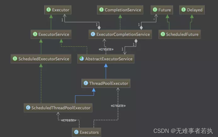 我们先看一张线程池相关接口的类图结构,网上盗来的,但画的还是很全面的