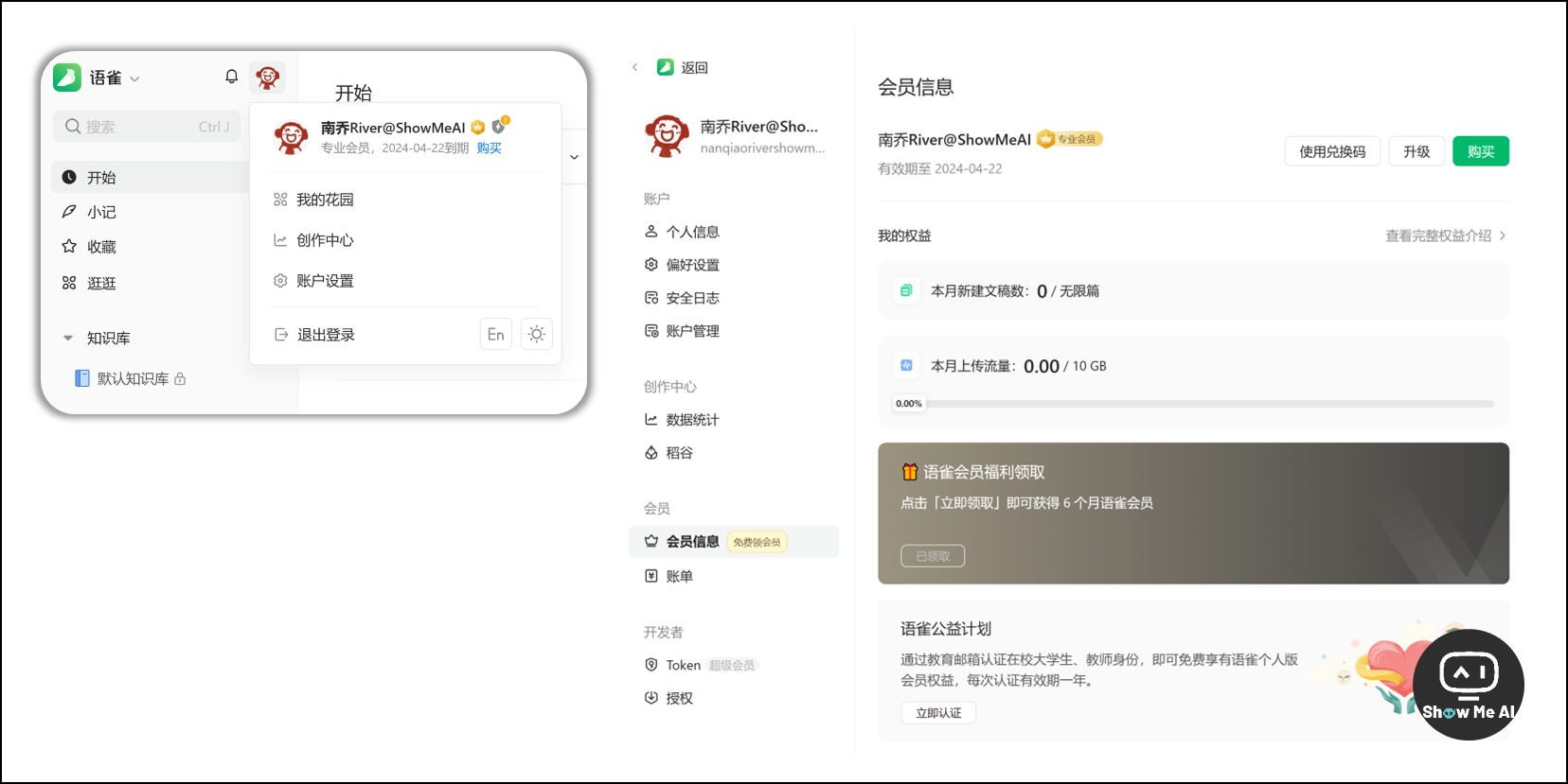 我用小号注册登录了一下,非会员用户也可以领到!访问上方链接,或者点击「头像 - 账户设置 - 会员信息 - 语雀会员福利 - 立即领取」 ⋙ 语雀故障公告
