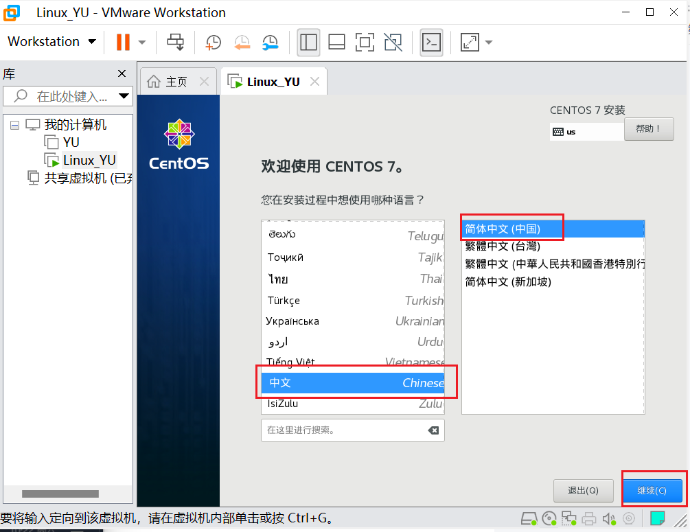 然后等待加载安装,安装完成后会来到当前页面,选择中文,点击继续