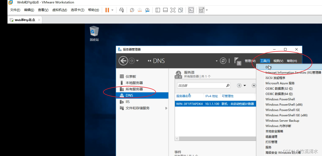 通过工具菜单打开DNS管理面板