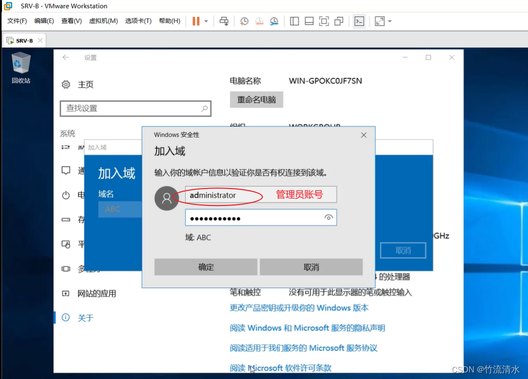 会提示你重启 管理员也变为了域管理员 ABC\Administrator