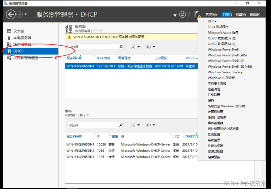 配置DHCP 在DHCP中创建和激活作用域