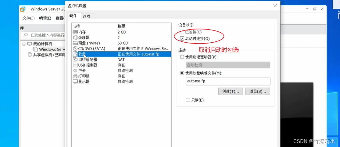设置软盘 的启动时连接