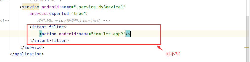1.服务创建完成后,要在AndroidManifest.xml文件中注册该Service,否则服务是不生效的。