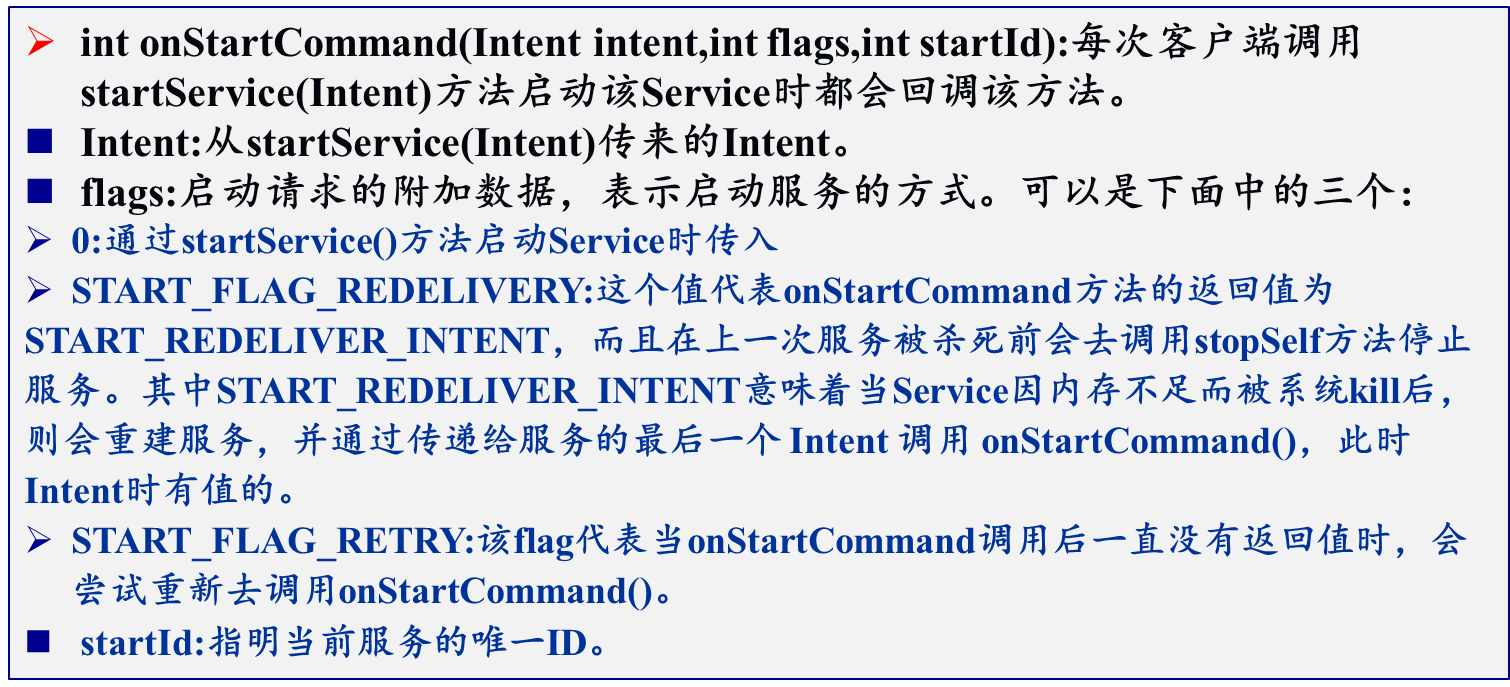 以MP3播放器为例,在后台工作的Service通过Context.startService()启动某个特定音乐播放