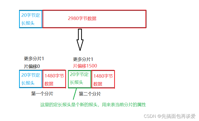 两个报文都是20字节固定长度报头,然后是报文的选项字段,然后就是数据。
