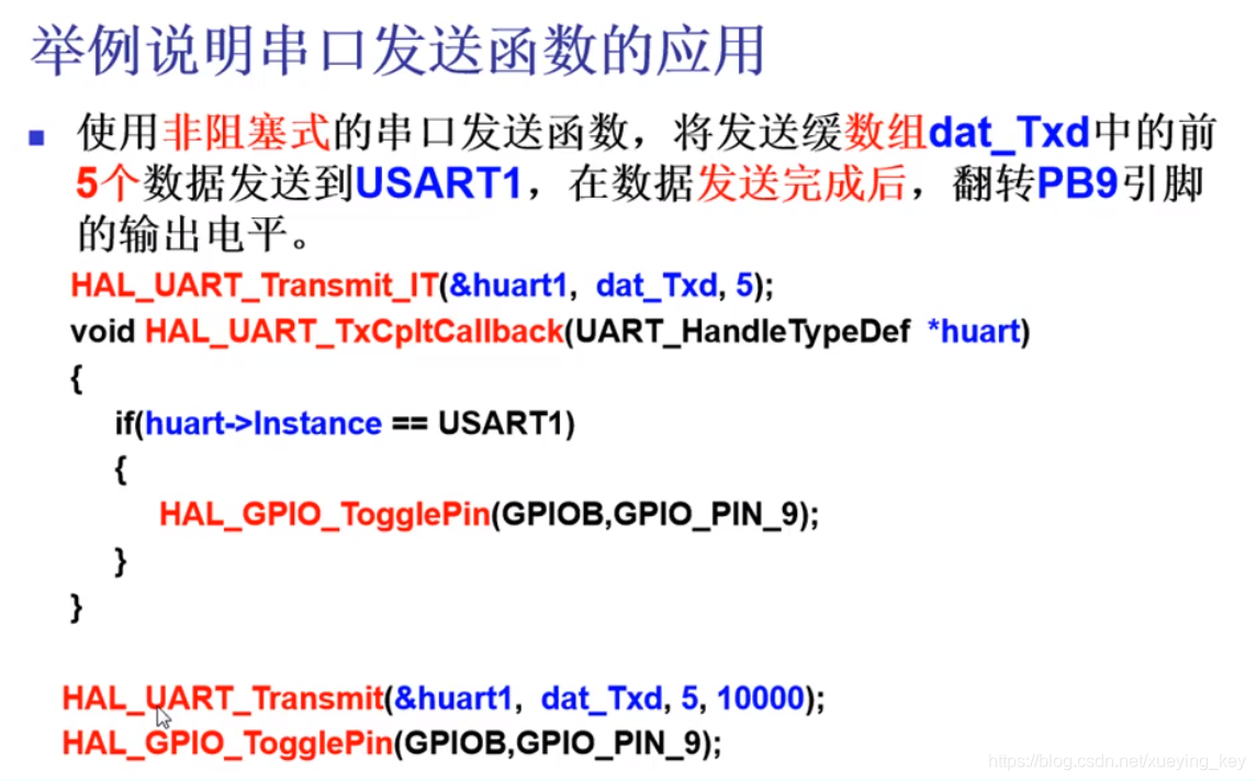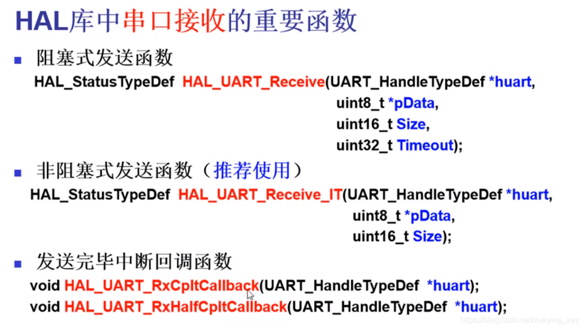 阻塞式指的是函数必须执行发送完,才进行下一步,所以一般不建议使用,主要是使用带有中断功能的非阻塞式