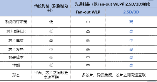 图:先进封装与传统封装简单对比